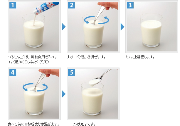 牛乳や流動食に素早く飲み込みやすいトロミをつけることができます