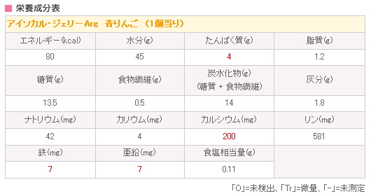 | 製品名 | アイソカル・ジェリーARG青りんご味(66g)80Kcal |
