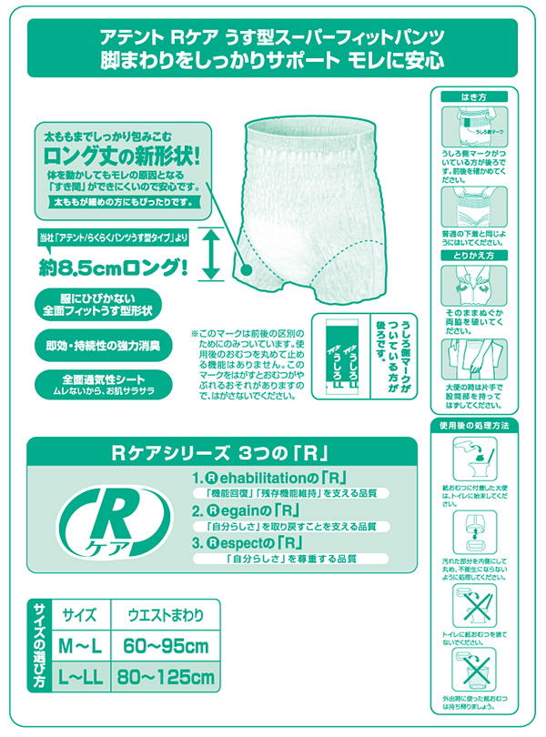 | 製品名 | アテントRケアうす型スーパーフィットパンツ L~LLサイズ 男女兼用 2045円【ケース販売/2袋】病院・施設・業務用 |