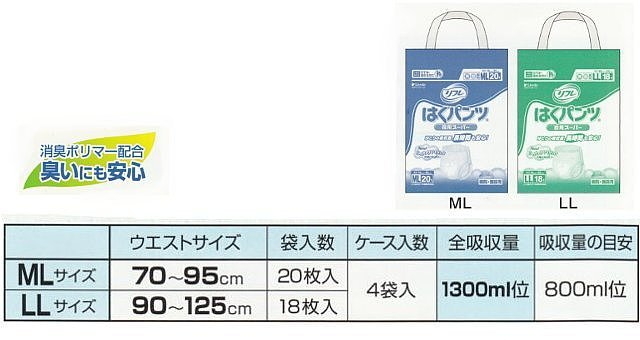 | 製品名 | パッケージリニューアルリフレはくパンツ夜用スーパーML20枚入【ケース販売/4袋入】 |