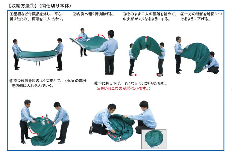 間仕切り本体1、収納袋1、屋根1、表札1、伝言板1、ボード消し1、砂袋4、アルミマット1