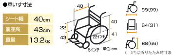■標準機能/折りたたみ式(幅34cm)、背折れ式、ハンド式介助ブレーキ