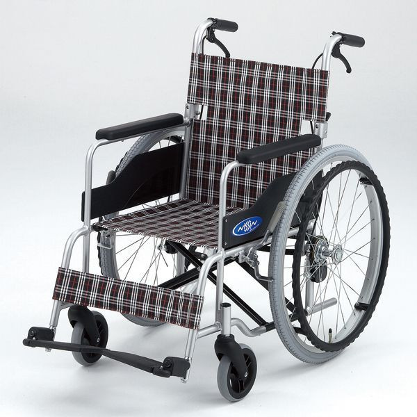 商品説明: ◆高強度アルミ製自走式車いすNC-1CB 座面:40×40cm 前座高43cm 重さ13.2kg 耐荷重100kg シート:チェック柄 ■機能:ハンド介助ブレーキ付 背折れ式 折りたたみ式