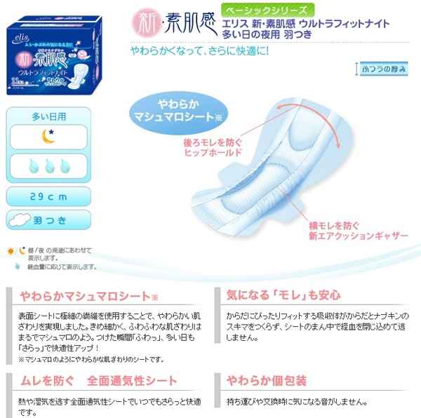 型番: 【生理用ナプキン】エリス新・素肌感(羽つき)多い日の夜用10枚×2個パック【ケース販売/18袋入】