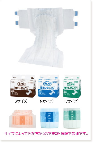 ・腰まわりの長い「交換らくらくテープ」が、お腹の前方まで届き、つけ外しが簡単です。