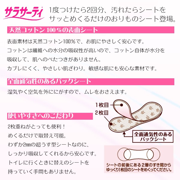 型番: 【生理用品】サラサーティコットン1002枚重ねのめくれるシート72枚(36組)【ケース販売36袋入】