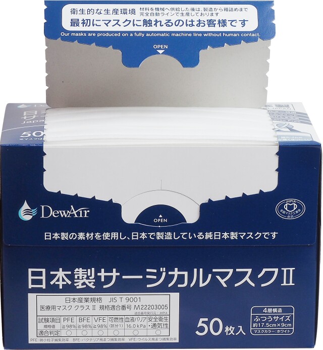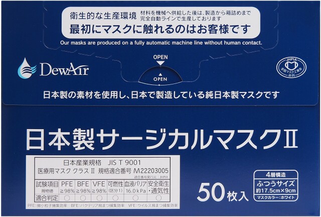 ●日本産業規格 JIS T9001 医療用マスク クラスⅡ適合 規格適合番号M22203005
